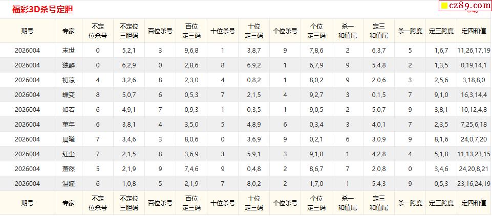 首页 > 福彩3D预测 > 26年004期彩宝贝专家福彩3D杀号定码图表
